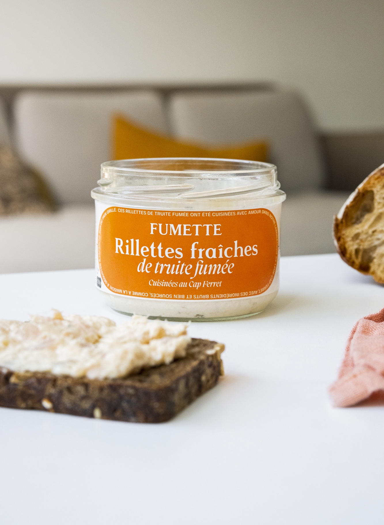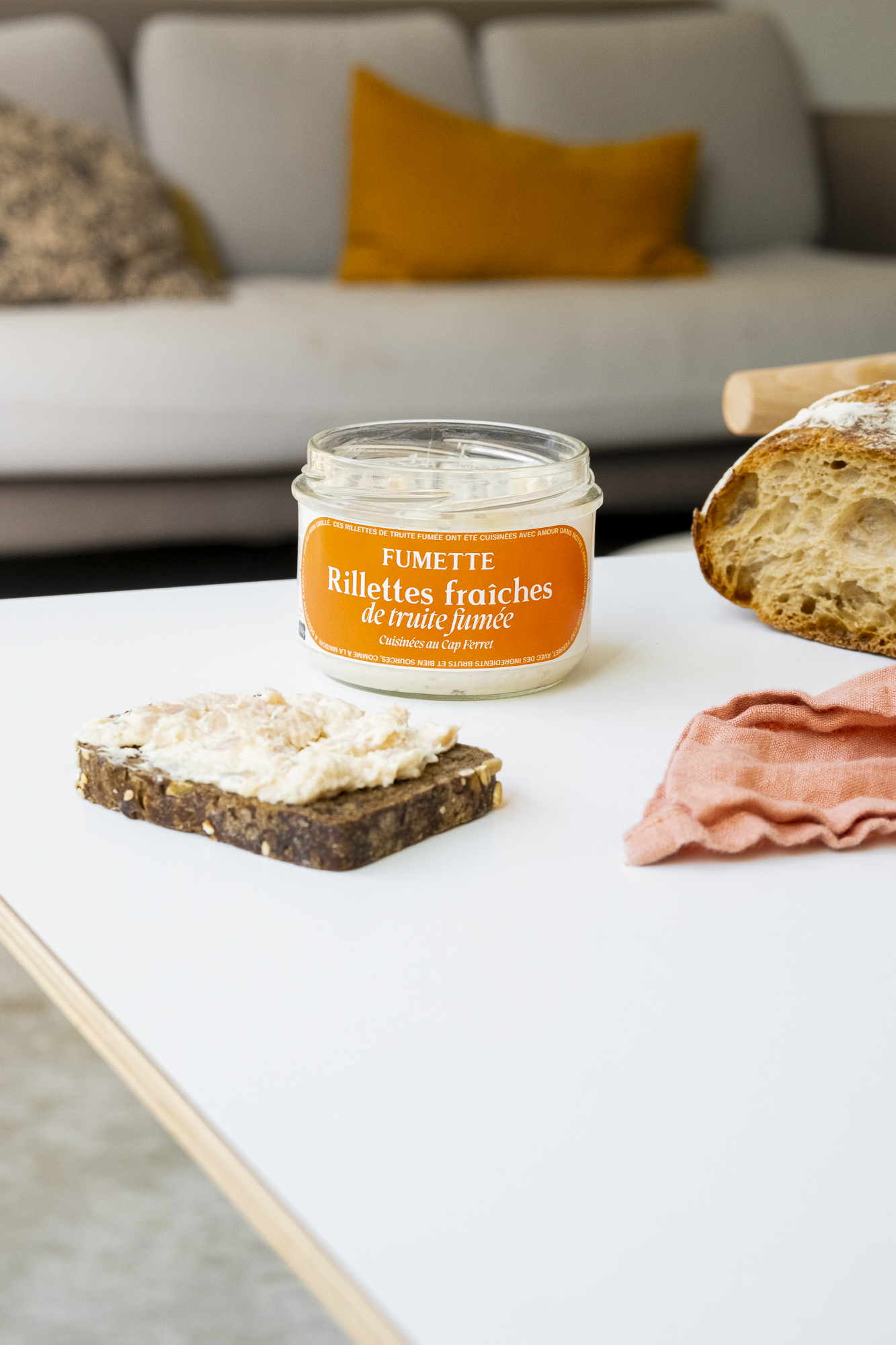 Truite bio fumée par nos soins (origine Ariège), sel de l’ile de Ré, crème fraîche épaisse, échalote, ciboulette